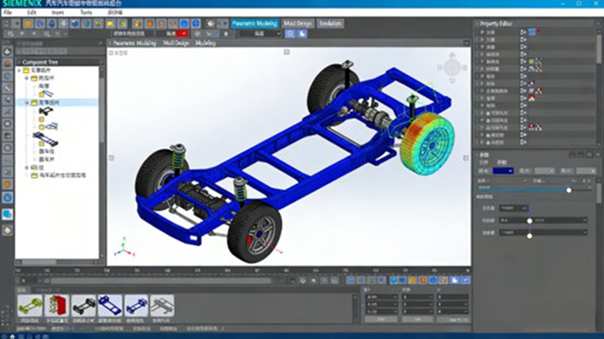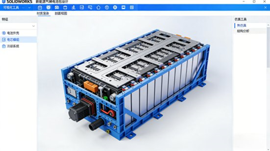 SolidWorks is popular for its ease of use and its strong capabilities in small assembly design and modeling. It’s especially useful for automotive parts like battery packs in electric vehicles.