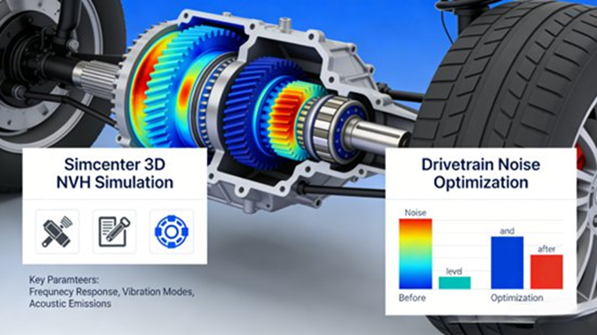 Simcenter 3D uses FEM, BEM, and hybrid modeling to simulate and optimize NVH performance. This helps engineers predict and reduce noise, vibration, and harshness in vehicles, improving comfort and cabin quietness.
