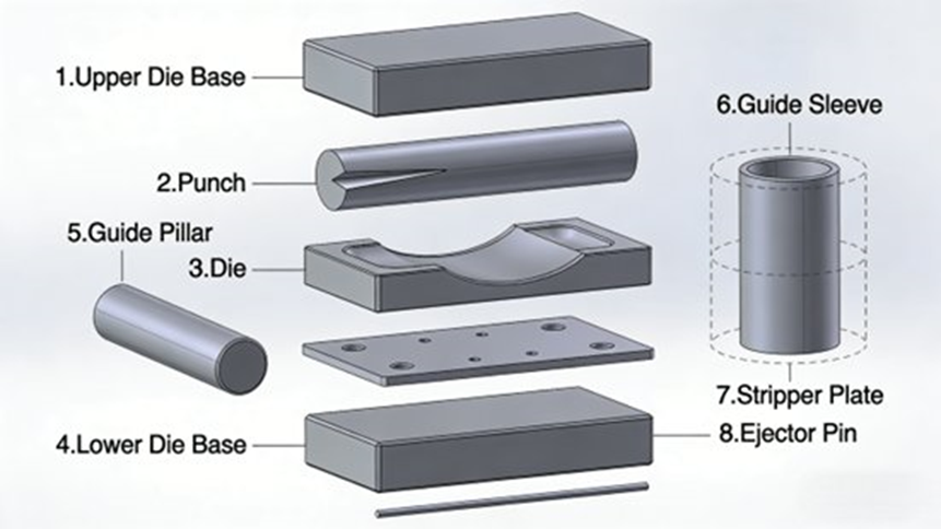 Die design converts process planning into physical structures, following clear rules: accuracy first, structural logic, and easy manufacturability/maintenance.