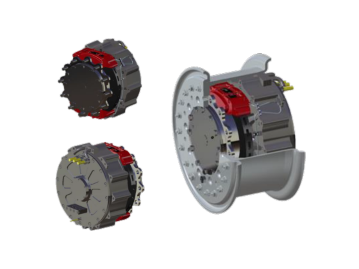 The EW-T12000-450 is a high-integration distributed drive in-wheel motor designed for mid-to-high-end electric vehicles, including passenger cars, SUVs, off-road vehicles, and special-purpose vehicles. This fully integrated electric wheel system combines the motor, reducer, brake, and suspension components into a single unit, eliminating the need for traditional drivetrains, axles, and differential gears—resulting in improved space utilization, reduced weight, and enhanced vehicle dynamics.