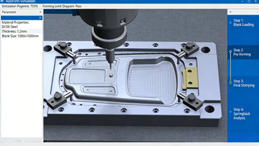 This is the core method used today. Using specialized software (AutoForm, DYNAFORM, PAM-STAMP), engineers build 3D models of the product, die, and material. This lets us simulate the entire forming process. It shows material flow, stress/strain distribution, and predicts defects (cracking, wrinkling, springback). This greatly cuts down on physical trial-and-error costs.