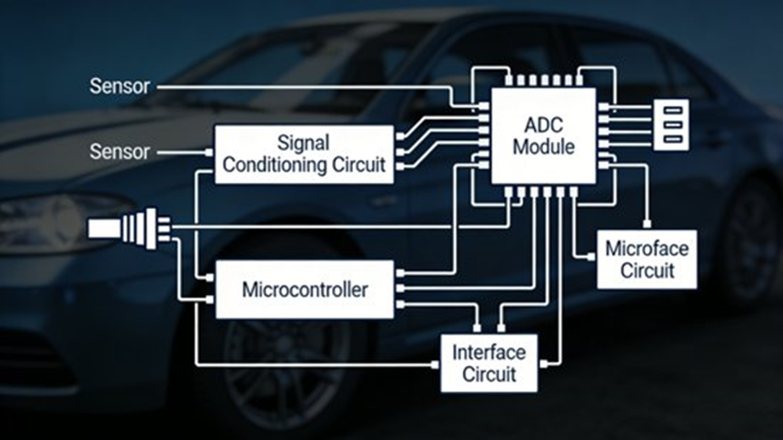 Typical automotive analog acquisition uses 12–16 bit ADCs. Sampling rates commonly fall around 100 Hz to 10 kHz. High-speed phenomena (like transient vibration or knock-related inputs) need 10 kHz or more to catch rapid changes.